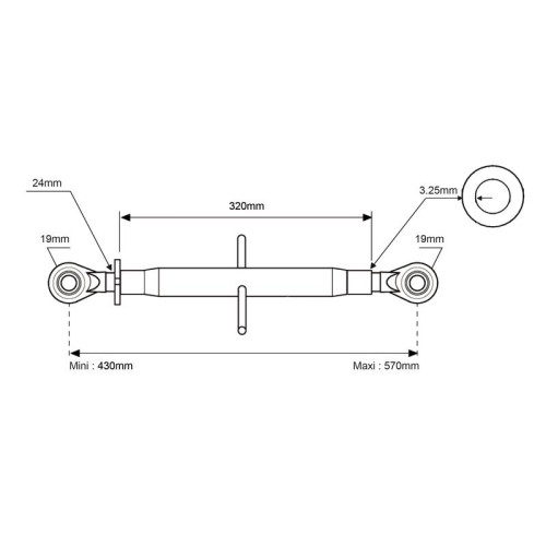 Oberlenker (Kat.1/1 (Ø19/19mm)) Kugel and Kugel, M24, Min. Länge: 430mm