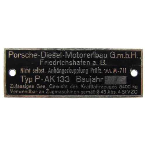 Typenschild Anhängerkupplung passend für Porsche-Diesel