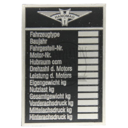 Typenschild bis ca. 1940 passend für Hanomag