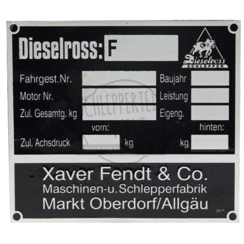 Typenschild Dieselroß passend für Fendt F12 - F40