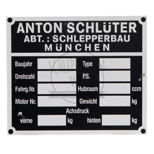 Typenschild passend für Schlüter