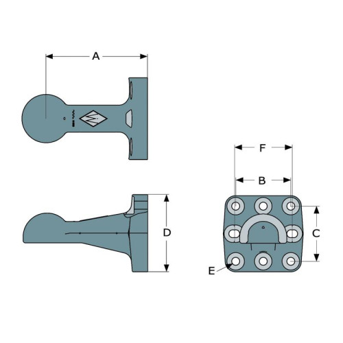 Lochhbild 100mm x 110mm, 8- Loch M16, bis 3,0 Tonnen Stützlast, Referenz 00652.90.0, HS105, ZKK80-110